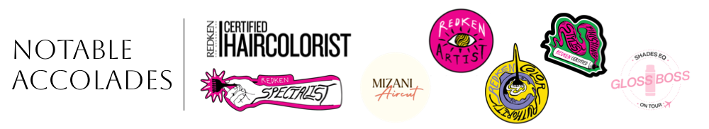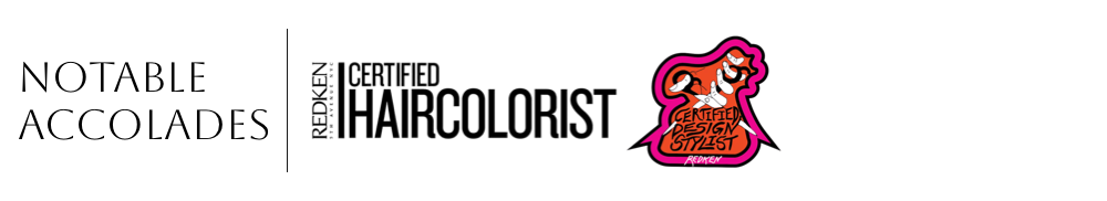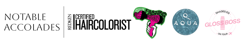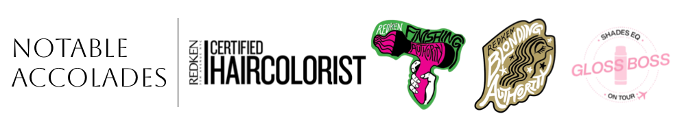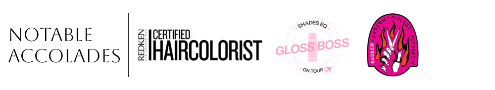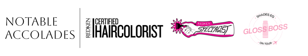 I hold the designation of Redken Certified Haircolorist and have been chosen as a Redken ShadesEQ Gloss Boss Award Winner!